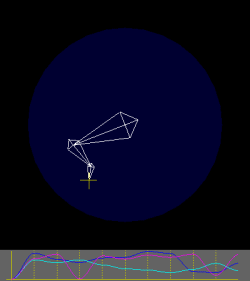 Forward Kinematics Inverse kinematics works well for solving the angle problems, especially when setting up animations. Depending upon the system and application needs, it may not be feasible to run the IK in real-time. An alternative is to now use the key frames from the IK to drive a forward kinematics solution. This project includes a simple foward kinematics engine. It interpolates the Euler angles at the joints. (A real world system would use quaternions for their forward kinematics, and would not be restricted to solutions in the plane like this project.)