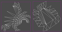 The right image is the color coded display of the triangle strips (alternating colors to show the strips.)