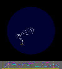 triangles given to the stripping engine. The Stripping engine's purpose is to generate strips as fast as possible (so it can be done at load time), rather than taking the time to generate the theoretically optimal solution. It does a fairly effective job. The picture to the right is of a rather simple case,
