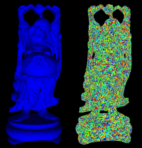 Buddha loaded from PLY, 1.1 million triangles. The left image is the shaded lit original file.